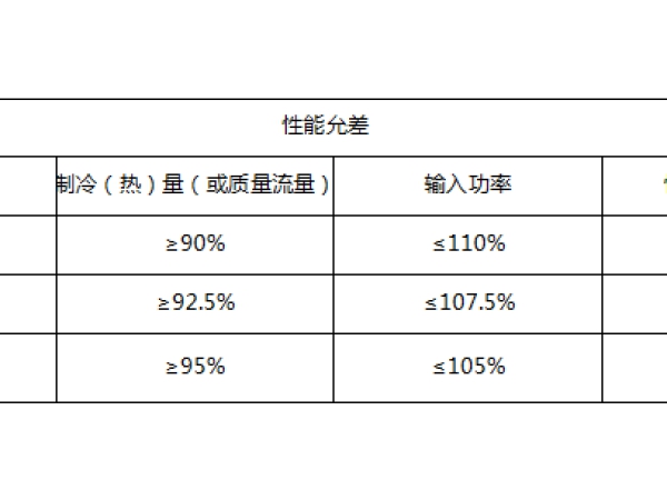 壓縮機或壓縮機組分為高溫型、中溫型和低溫型。低溫型壓縮機或壓縮機組的制冷量、熱量或質量流量應大于等于90%,輸入功率小于等于110%,性能系數大于等于90%。中溫型